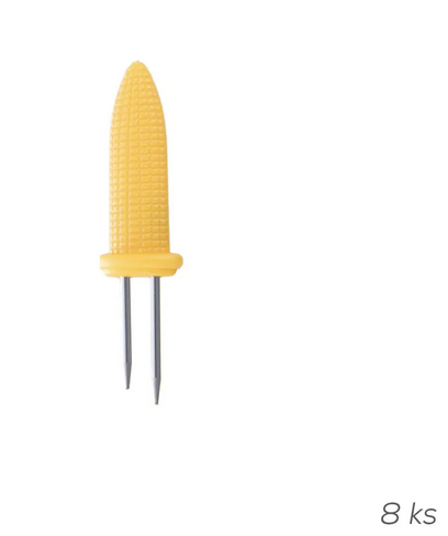Držáky na grilovanou kukuřici vyřeší servírování horké kukuřice. Sada 8 ks. Držáky zabodnete z obou stran do ugrilované kukuřice. Slouží pouze k servírování, nikoli k tepelné přípravě. Materiál: plast PP, nerezové hroty. Rozměry: d. 6 cm, š. 1,5 cm. Není vhodné do myčky.