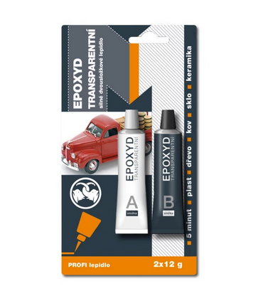 Rychle vytvrditelné dvousložkové epoxidové lepidlo v transparentním provedení. Pro lepení materiálů jako jde dřevo, kov, keramika, plasty, mramor, beton, atd. Spoj je trvanlivý, odolný proti vodě a teplotám do 80 °C.