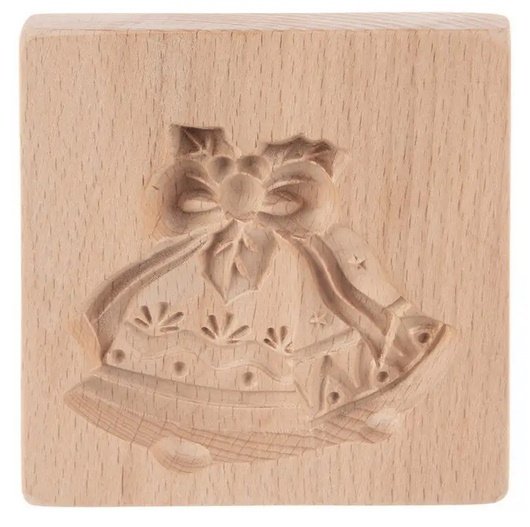 Forma je vhodná nejen na sušenky, ale i na perníčky, čokoládu nebo želé. Materiál: bukové dřevo. Rozměry: 10x10x2 cm, zvonky 8x7 cm. Není vhodná do myčky ani do trouby.