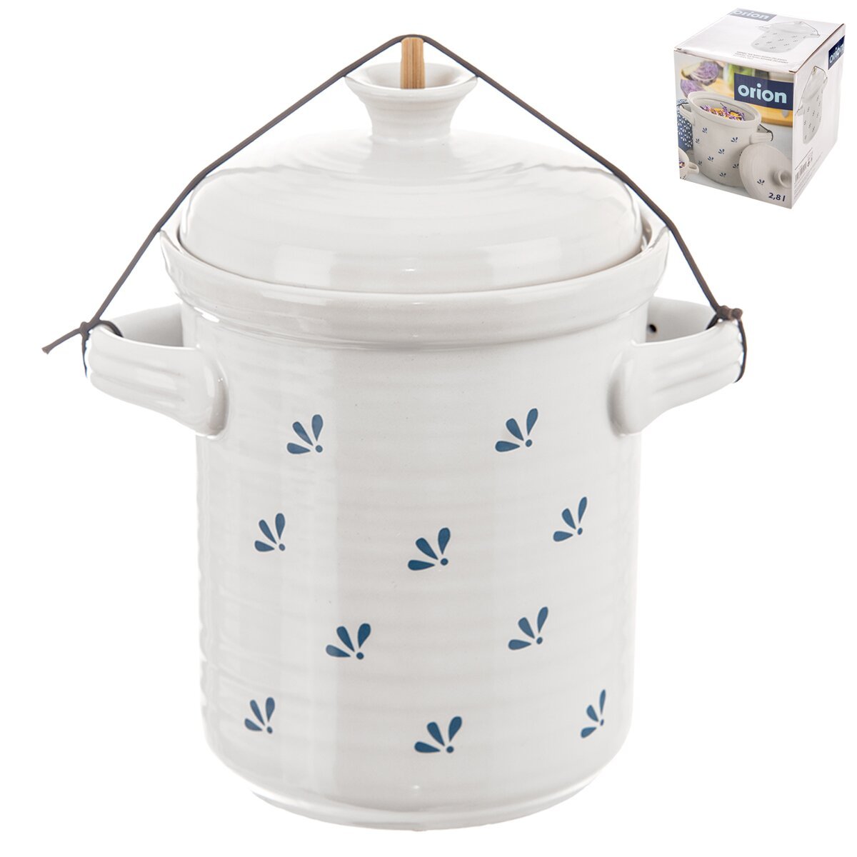 Hrnec na nakládání zeleniny vám pomůže připravit Pickles - zelenina kvašená pomocí bakterií mléčného kvašení. Vnitřní poklička je tlačena dřívkem a gumičkou stále ke dnu a vyvíjí tlak na zeleninu. Materiál: glazovaná keramika, dřevo, guma. Rozměry: objem 2,8 l, pr. 17 cm, v. 19/25 cm. Vhodný do myčky nádobí. Uvnitř balení recepty.