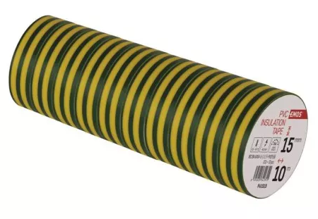 typ pásky PVC šířka pásky 15 mm délka návinu 10 m tloušťka pásky 0,13 mm barva zelená/žlutá potisk bez potisku prodloužení minimálně 125 % elektrická pevnost minimálně 40 kV/mm elektrická pevnost po vlhku minimálně 35 kV/mm splňuje směrnici ROHS ano splňuje směrnici REACH ano rozsah instalačních teplot -25–90 °C materiál lepidla kaučuk integrovaná textilní síťka ne pevnost v tahu 150 N/10 mm odolné UV ano přilnavost k oceli minimálně 1,8 N/10 mm předpokládané použití izolace kabelů přilnavost k podkladu 1,5 N/10 mm vodotěsný spoj ano doporučená skladovací teplota 10–45 °C vyhovuje normě ČSN EN 60454-3-1-2/F-PVC/60 zkouška plamenem <1 sec samozhášivé ne vytváří tlakotěsný spoj ne rozměr 60 × 15 mm