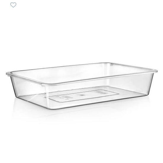 Miska obdélník čirá. Materiál: plast. Rozměry: 35x25x7 cm, objem 4,5 l.