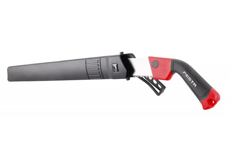 zahradní pilka FESTA s pouzdrem čepel z kvalitní legované oceli, trojbroušené zakalené zuby rychlý a přesný řez, vhodné pro mokré i suché dřevo dvoukomponentní tvarovaná rukojeť plastové pouzdro s klipem na opasek délka břitu 260 mm
