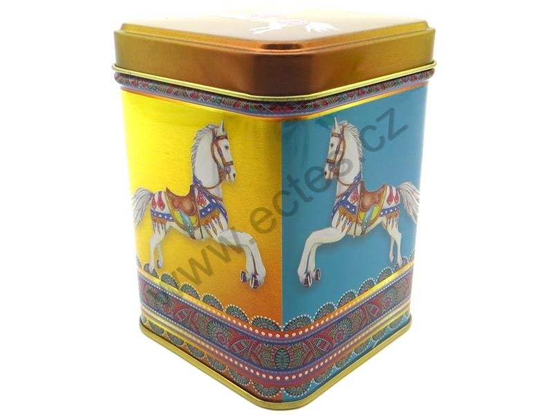 čtvercová plechová krabička čajovka vhodná na 100 g sypaného čaje vnější rozměr: 65 x 65 x 98 mm