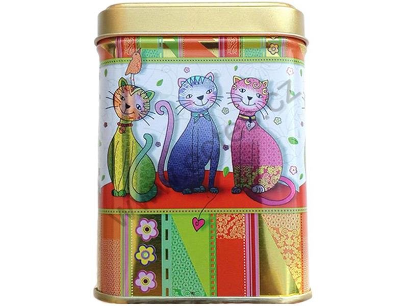 čtveratá plechová krabička čajovka vhodná na 25 g sypaného čaje zlatý metalický efekt rozměr: 40x40x65 mm