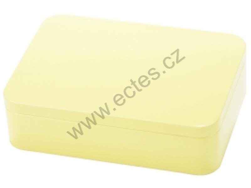 nízká obdélníková plechová krabička | ideální na čokoládové pralinky - cca 150 g stylové aroma víčko pro lepší zachování vůně pohlednicová velikost - rozměr: 142 x 101 x 40 mm