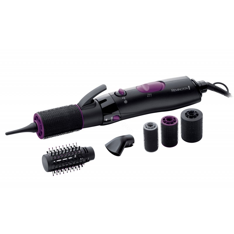 Kulmofén se samodržícími natáčkami pro jednoduché vytvoření vln a objemu Výkon 800 W Nástavec na natáčky 3 velikosti samodržících natáček 30mm x 5 38mm x 5 50mm x 5 50mm termální kartáč Koncentrátor pro vysoušení vlasů 2 teplotní / rychlostní nastavení Studená vlna pro zafixování účesu Tlačítko pro uvolnění nástavce Skladovací kufřík Očko pro zavěšení Otočný kabel