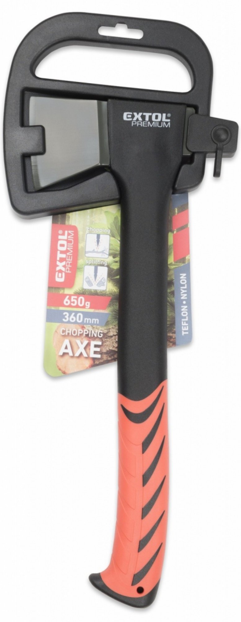 Sekera s lehkou a odolnou nylonovou násadou. Násada tlumí razy a má protiskluzovou úpravu rukojeti s rozšířením na konci proti vyklouznutí. Čepel je tvrzená a potažená vrstvou teflonu pro snížení tření mezi dřevem a sekerou. Sekera je ruční pracovní nástroj, používaný především k opracovávání dřeva a k sekání či kácení stromů. Skládá se z topůrka a hlavy sekery. Hmotnost výkovku: 650 g Celková hmotnost: 0,785 kg Délka násady: 36 cm
