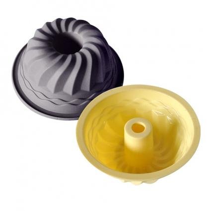 Silikonové formy pro pečení mini bábovky. Bábovka se v silikonu nepřipálí. Formy jsou lehce omyvatelné. Je určena pro použití v plynových, elektrických, horkovzdušných a mikrovlnných troubách, vhodné do ledničky, mrazničky a myčky. Silikon je odolný od -40C do 220°C. Bábovka se z formy lehce vyklopí. Sada obsahuje 2 ks - krémovou a šedo-hnědou formu.