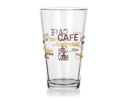 Sklenice VALUE o objemu 480 ml v konickém tvaru je vyrobena z čirého skla s dekorem CAFE. Sklenice je vhodná na studené nápoje. Jedná se o běžné stolní sklo. Výrobek je vhodný do myčky.