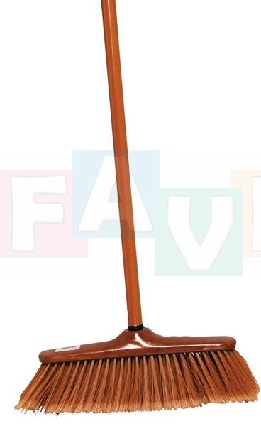 Smeták o šířce 28cm, tyč o délce 130cm v imitaci dřeva. Tento smeták slouží k zametání nečistot z hladkých ploch. Jeho štětiny jsou husté a zjemněné na koncích.