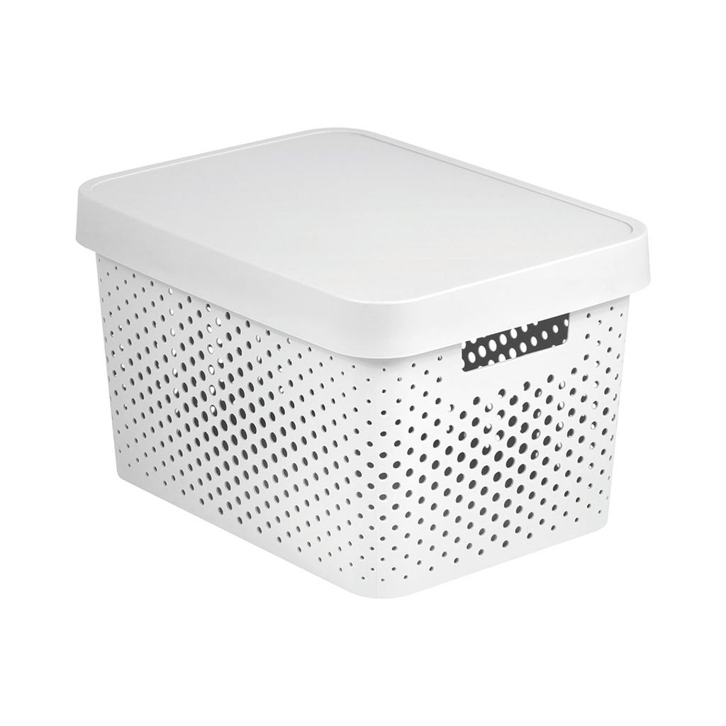 Odolný koš o objemu 17 l pro uložení předmětů v šatníku, koupelně nebo ve skříni. Vyrobený z vysoce kvalitního plastu odolného proti vlhkosti. Ažurová konstrukce zajišťuje cirkulaci vzduchu. Pohodlné, velké úchyty usnadňují přenášení plného koše. Díky sladěným rozměrům je možné vytvářet sestavy naskládáním různě velkých košů z řady Infinity na sebe. Kombinace praktického tvaru a estetického vzhledu umožnila vytvořit dokonalý výrobek pro každou domácnost.
