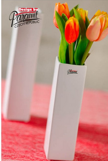 Bílá glazovaná vázička je vysoká 20 cm a její průměr je 5,5x5,5 cm.