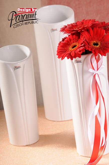 Jednoduché vázy s malým detailem, a to jsou dvě linky, které vytváří zajímavý prvek. Váza je vysoká 28 cm a svým vzhledem ji řadíme k modernímu stylu.