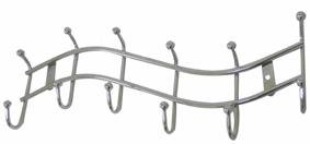 V zádveří či jiném pokoji Vám tento věšák velmi dobře poslouží. Má šest háčků, vlnkovaný tvar, vyroben z pochromovaného kovu. Šroubky jsou součástí balení. Rozměry - 13,5 x 44,5 cm