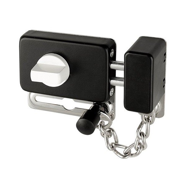 Přídavný vrchní zámek na dveře s vložkou pro dodatečné zabezpečení dovnitř otvíraných dveří. Při uzamčení zámku na první západ lze otevřít dveře na omezenou vzdálenost táhla, při uzamčení na dva západy je zajištěno plné uzamčení dveří v rámu. Zvýšená odolnost proti odvrtání. Překrytý profil cylindrické vložky je odolný proti vyhmatání planžetou. Vhodné pro pravé i levé dveře o šířce 40-45mm. Zajištění zámku přes dva 8mm ocelové trny.