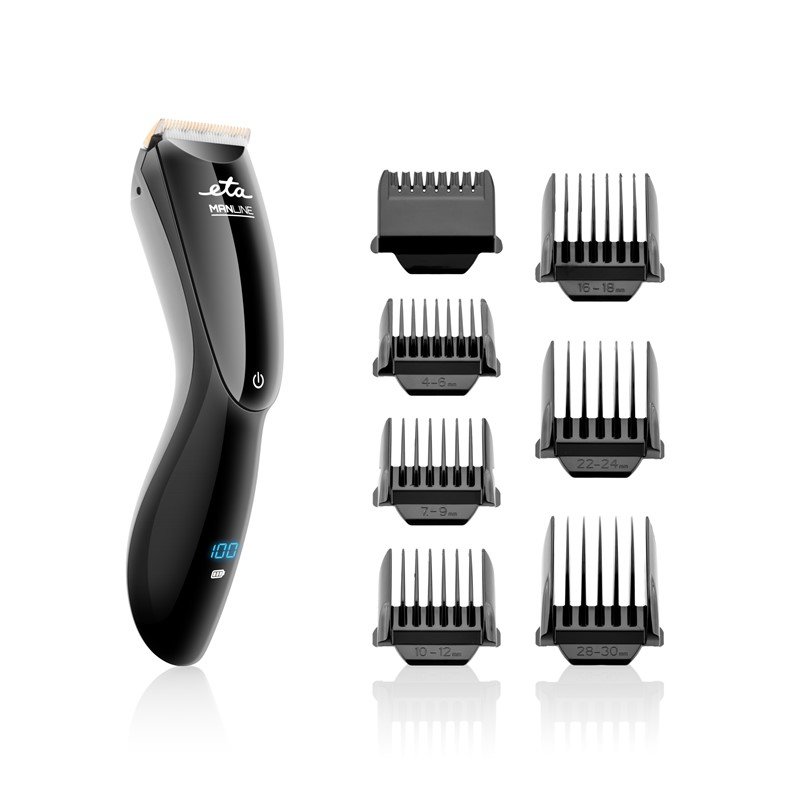 Zastřihovač ETA Eliot se díky bohatému příslušenství postará o vaše vlasy, chloupky a také o úpravu vousů. Odnímatelná zastřihovací hlava je opatřena velmi kvalitním titanovo-keramickým ostřím, na které jednoduše nasadíte jeden z hřebenových nástavců, nebo ji můžete použít samostatně a vybrat si přitom požadovanou délku střihu (0,8 / 1,5 / 2,2 / 2,8 mm). Pomocí šesti hřebenových nástavců, které snadno vyměníte a nasadíte, lze upravit délku vlasů na 4-6 mm, 7-9 mm, 10-12 mm, 16-18 mm, 22-24 mm, 28-30 mm. Vhod přijdou také nástavce na prostřihávání.