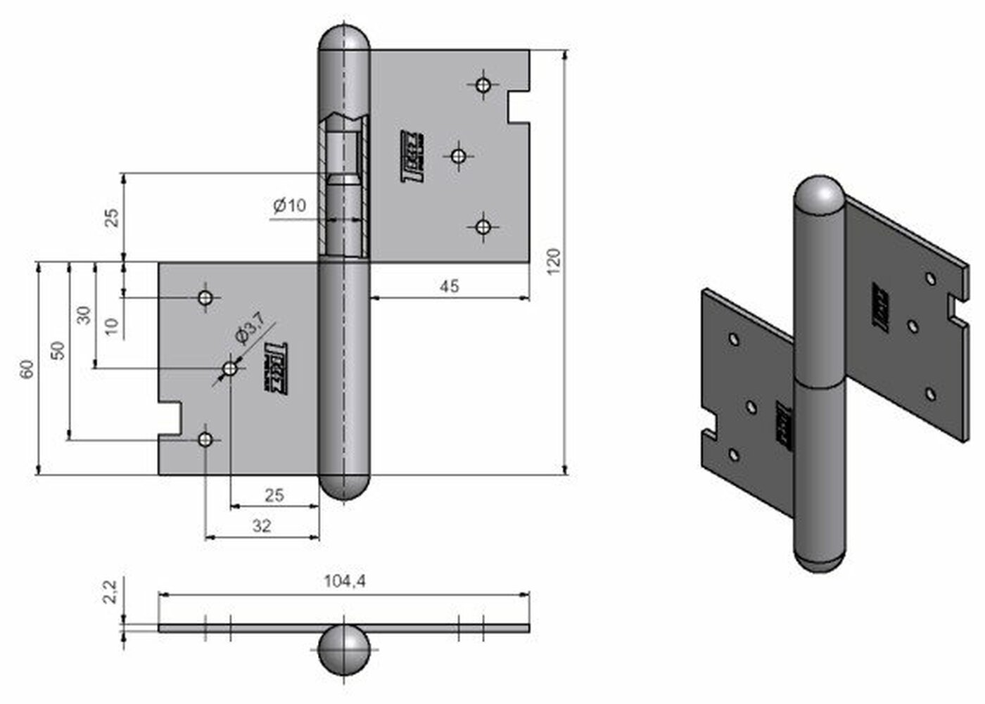 Průměr pantu (vnější): 14,4 mm Únosnost / ks (v kg): 25.00 Typ závěsu: Kompletní závěs Typ dveří: Interiérové Orientace dveří nebo okna: Pro levé dveře (zárubeň) Materiál dveřního křídla: Dřevo Provedení dveří: S polodrážkou Typ zárubně: Dřevo masiv Ukončení výrobku: Půlkulaté (UR25) Materiál výrobku (převažující): Ocel Požární odolnost: ne Uchycení závěsu: K zadlabání Výška čepu: 25 mm Český výrobek: Ano